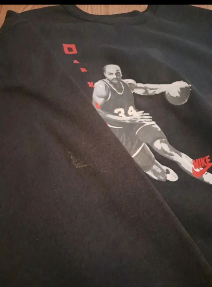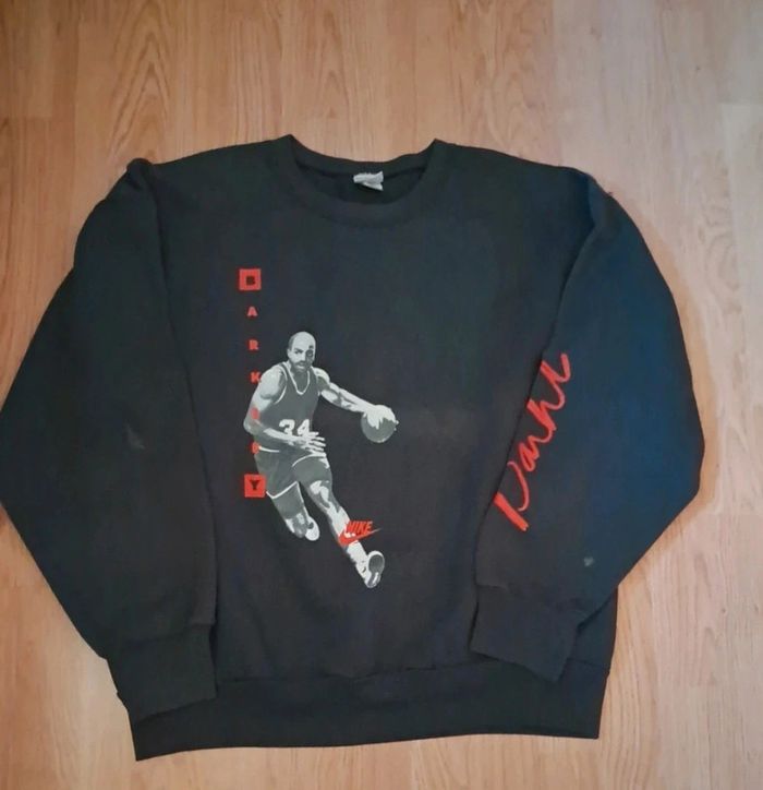 Pull vintage Nike original featuring Charles Barkley (#34) en plein dribble, rare et Made in USA 🇺🇸. 🖤 Taille : L (convient XL/L). 🖤 État : Bon, tissu épais et confortable, impression bien conservée. 🖤 À noter : 2 petites tâches marrons discrètes + 1 petite tâche blanche.. (Voir photos si besoin) Tissu épais typique des années 90, parfait pour la collection NBA ou un outfit streetwear vintage. Charles Barkley, légende NBA, Hall of Fame, a marqué l’histoire du basket par son style explosif. Ce crewneck a été fabriqué dans les années 80/90 par Nike aux États-Unis avant la délocalisation, le rendant rare et recherché par les amateurs de vintage. #NikeVintage #CharlesBarkley #VintageNike #NBAVintage #MadeInUSA #VintageCrewneck #90sStyle #StreetwearVintage #BasketVintage #NikeSweater #VintageStreetwear #NBACollectible #VintageFinds #VintageSweater