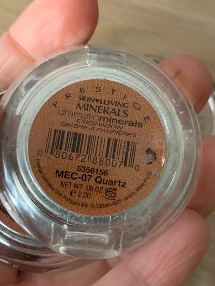 5 fards à yeux mono de chez Skin Loving Minerals, maquillage minéral. Un marron mat présenté ouvert, les autres sont irisés et sont slivés. Boitiers de 5 cm, 2,2g. #cristoliebeauté #maquillageminéral #fardsapaupieres #makeup #minerals