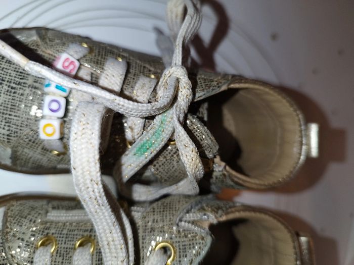 Chaussures porté 2mois max. Présence de peinture à l'eau sur un lacet