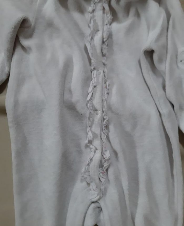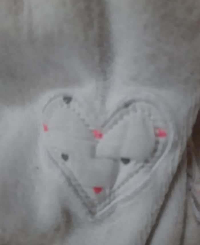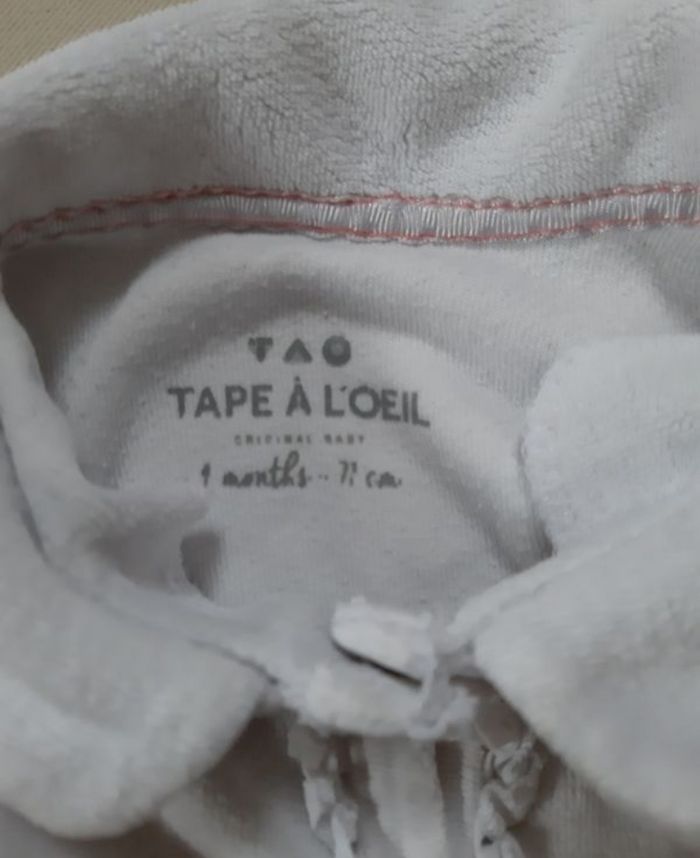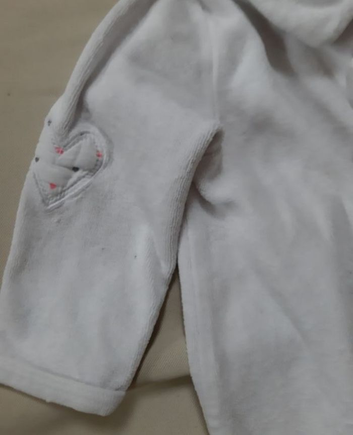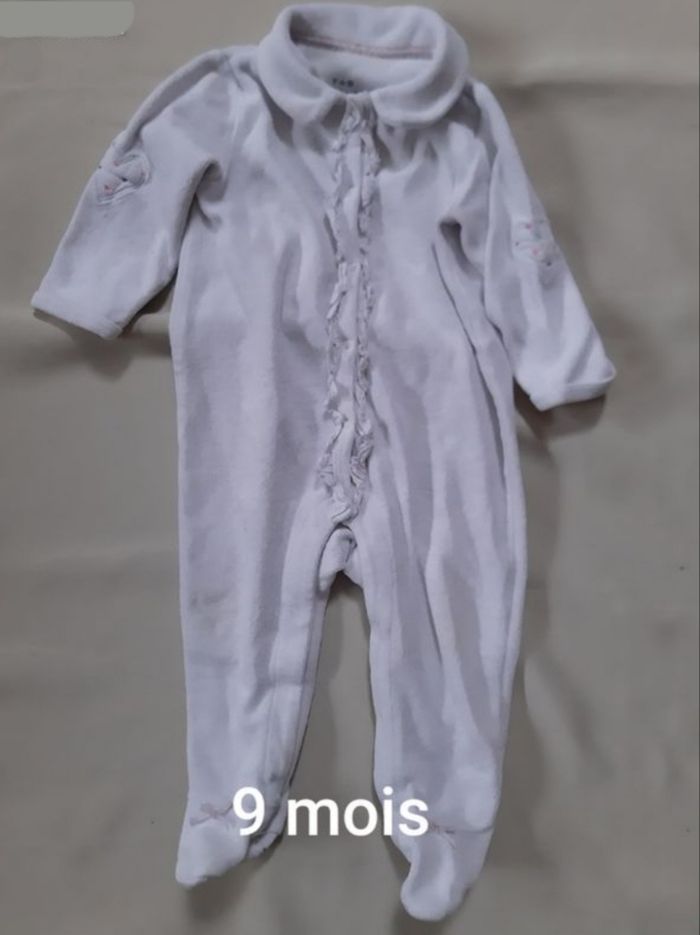 pyjama en velours blanc, de la marque Tape à l'Œil, en taille 9 mois fermeture par boutons pressions sur le devant et à l'entrejambe motifs : cœurs au niveau des coudes et sous les pieds petits nœuds sur les pieds En très bon état. Remise en main propre possible dans le secteur de Pont-Audemer / Beuzeville / Pont-l’Evêque. Envoi possible. N'hésitez pas à faire un lot pour amortir les frais de port et les frais de protection acheteur. 📦 😊 Vêtements de la taille naissance à la taille 4 ans disponibles. Jouets et livres disponibles. N'hésitez pas à me demander. Tout n'est pas encore en ligne...