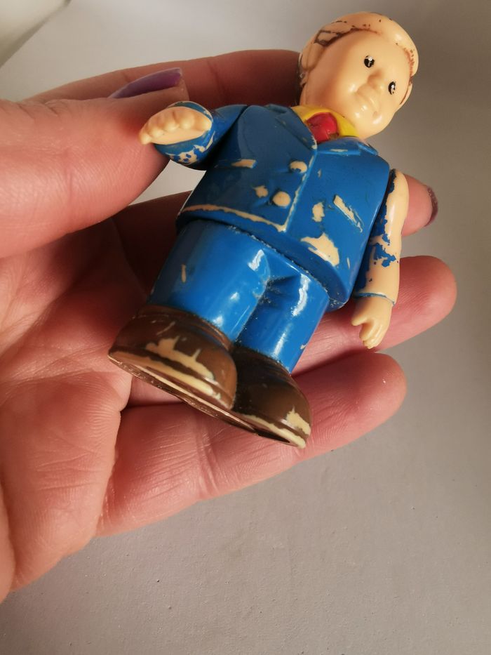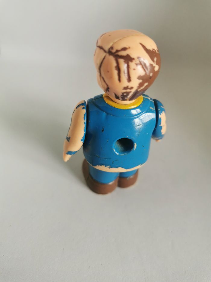 Figurine articulée vintage bonhomme en costume, bon état général, à repeindre, car la peinture est en grosse partie enlevée. Taille 7 cm, poids 19g.
