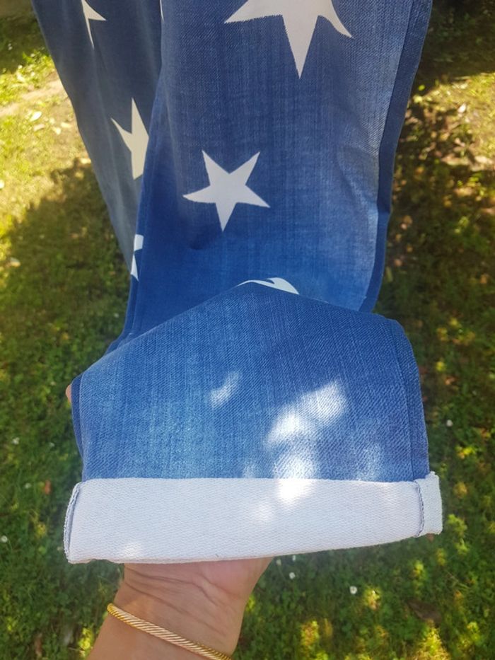 Article neuf avec etiquette : Pantalon Large avec elastiques à la taille style jeans bleu brut avec Étoiles Blanches et revers en bas des jambes. Ultra confort 👍Taille unique mais correspond à une taille M / L 100% coton. Livraison soignée et réduction sur les lots 📦🌸 #naesahfemmes Pantalon jeans jean pantacourt bleu brut jogging large décontracté élégant cool mode fashion fashionista accessoire accessoires femmes filles adolescente ados outfit ceinture femme féminin élégant blanc étoile petit prix neuf réduction #vintedgift