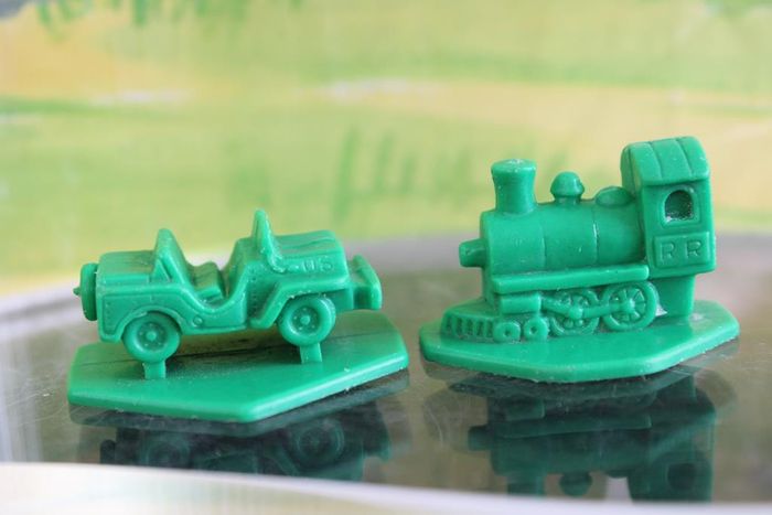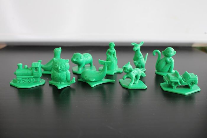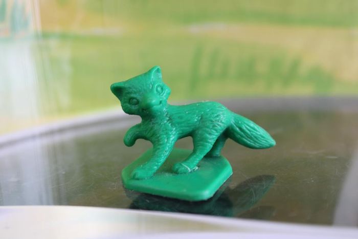 Lot composé de 10 figurines monochromes vertes mesurant environ 3.5 cm. 1 baleine 1 cochon 1 hibou 1 jeep 1 kangourou 1 locomotive 1 phoque 1 renard 1 reine 1 singe Figurines vintage des années 70 fabriquées par tupperware En bon état Réponds avec plaisir aux demandes d'informations complémentaires Réponse rapide envoi soigné dans les meilleurs délais