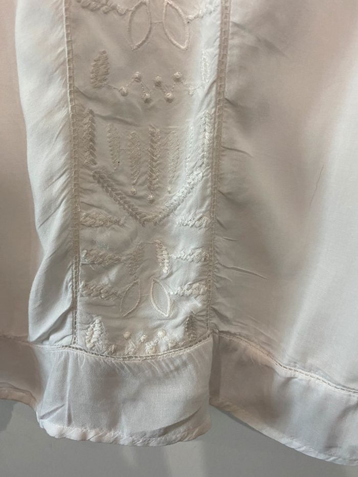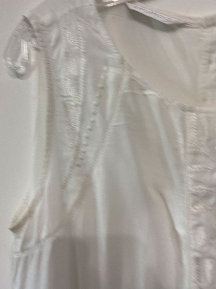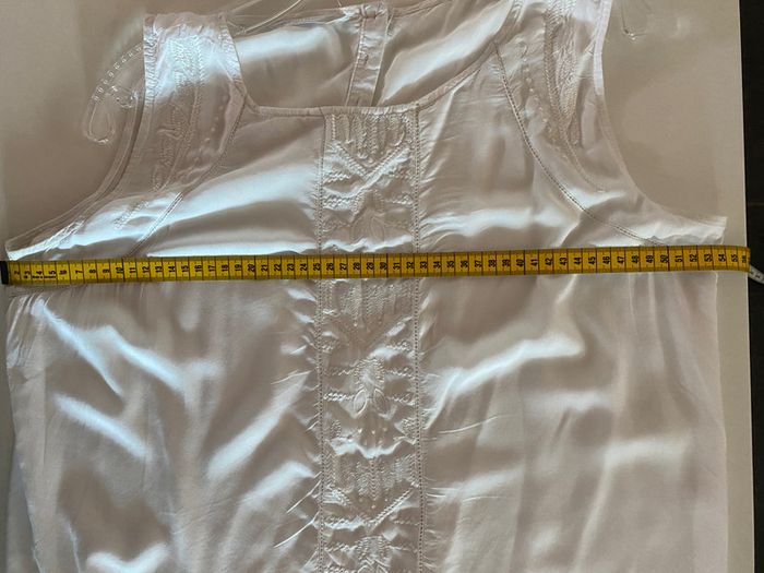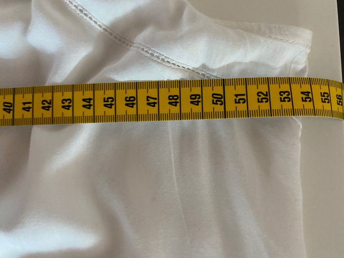 T-shirt taille 42 plus d’étiquette à l’intérieur montrer la taille. Voir les mensurations sur les photos. Un léger petit accroc en bas tout juste perceptible (voir photo)