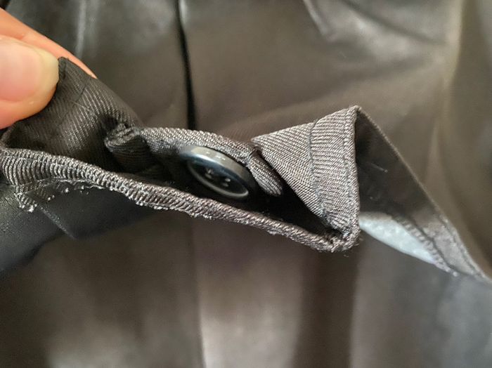 Manche ajustable avec des ceintures autour des poignées. Six boutons extérieur plus deux intérieur taille 3 selon la marque. Je suis disponible pour vous donner des mesures