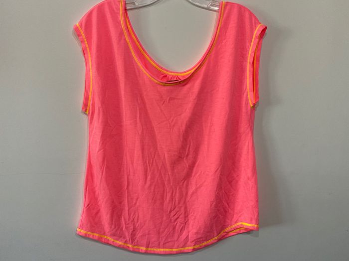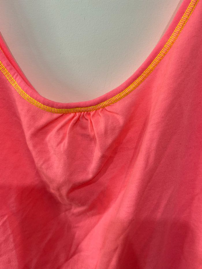 Taille 42, plus d’étiquette intérieur pour justifier la taille (voir les photos ci-dessus avec les mensurations) Rose avec surpiqûres jaune