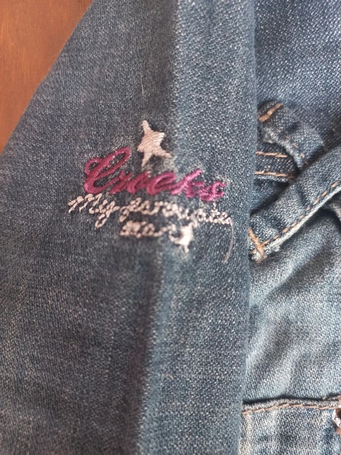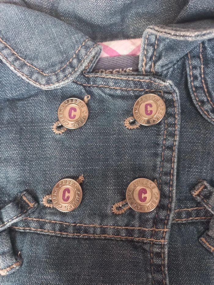 Jolie veste en jeans, avec 4 boutons, et des broderies sur une poche et la manche. En excellent état, très peu portée. Creeks 12mois Lot possible :-5% à partir 3 articles -15%pour 5 articles alors N'hésitez pas a consulter les autres articles en 12mois en cliquant ici : #fanny61119_fille_12mois #12mois #12moisfille #12moiscreeks #12moiscreeksfille #vesteenjeans #vesteenjeansfille #vesteenjeans12mois #veste #manteau #printempsété