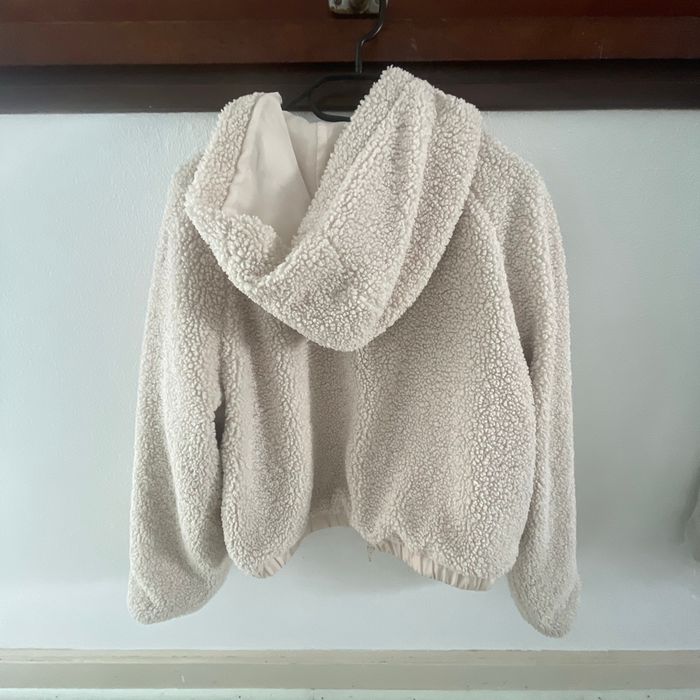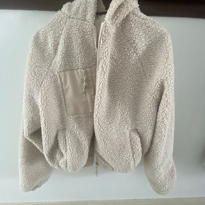 Veste à capuche blanc-neige – Doublure effet mouton Veste confortable et chaude de couleur blanc-neige. Capuche intégrée, trois poches pratiques et fermeture zippée. L’intérieur (ou les bords, selon le modèle) est doublé d’une texture effet mouton, pour un style cosy et une chaleur optimale. Parfaite pour la mi-saison et les journées fraîches.