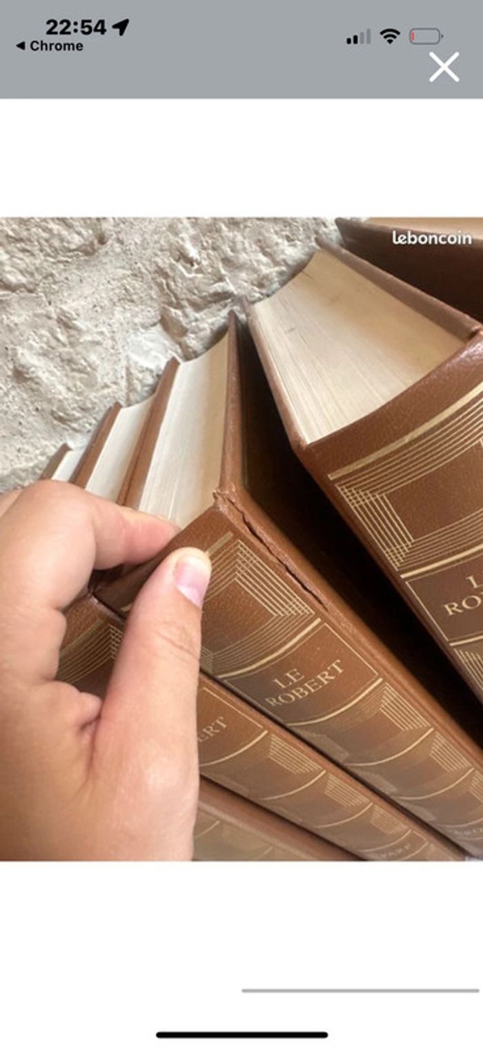 Le Grand Dictionnaire ROBERT - Ouvrages de Collection Dictionnaire alphabétique et analogique de la langue française [7 volumes] avec Dictionnaire universel des noms propres [4 volumes]. Société du Nouveau Littré – Le Robert 1981- 11 volumes in-4, Collection complète : 6100 pages, 60000 mots, plus de 200000 citations, de Villon à nos contemporains. Belle reliure éditeur avec inscriptions gravées or 23 carats sur dos & 1er plat. Excellent état juste un livre voir photo
