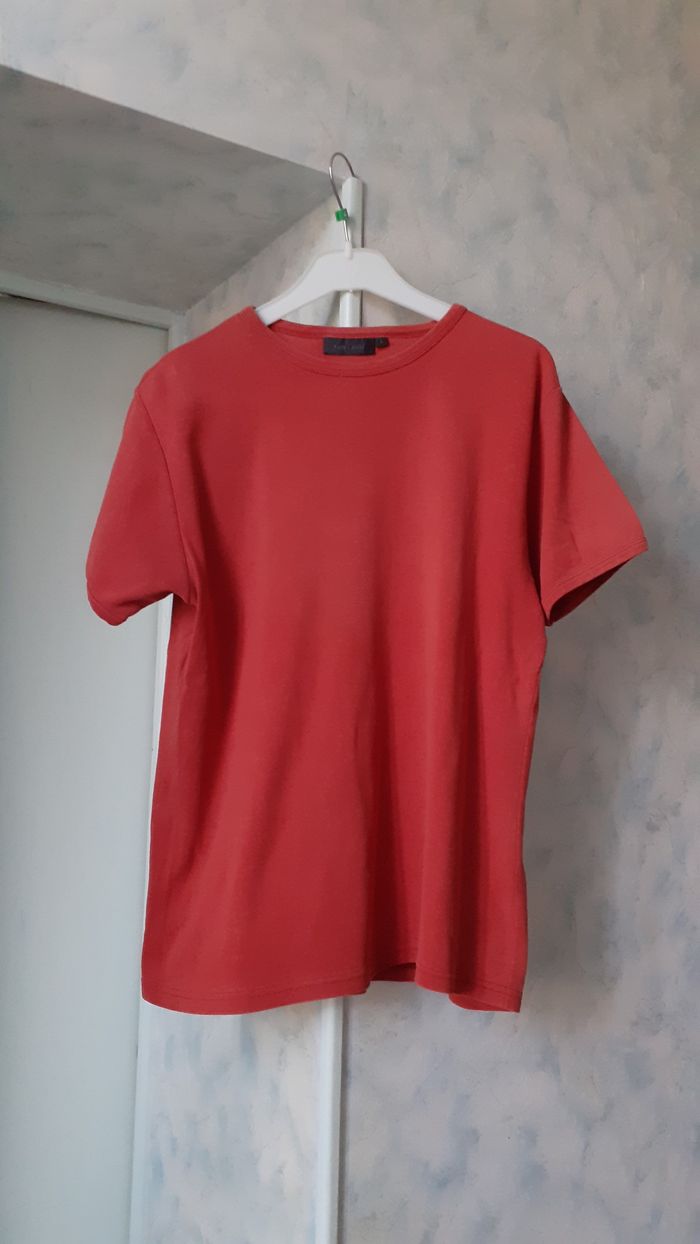 Vends un tee-shirt manches courtes 100 % coton, épais, couleur rouille, marque Kiabi Casual, taille L sur l'étiquette, 42-44. Longueur de l'épaule à la base : 64 cm Largeur aisselle à aisselle : 48 cm Largeur au niveau des hanches : 54 cm.
