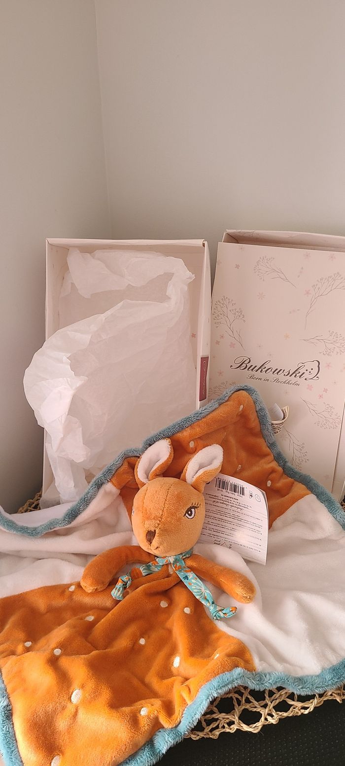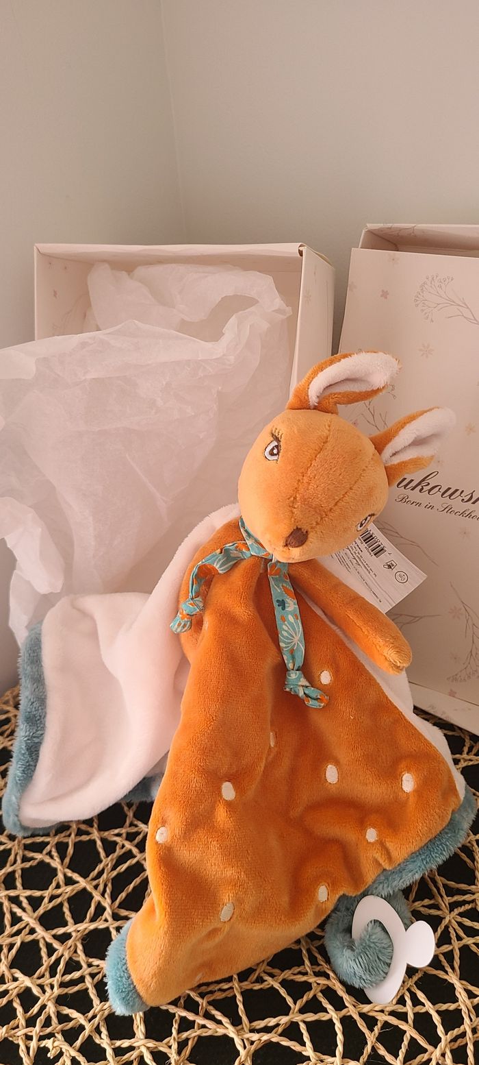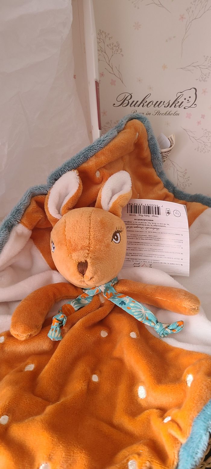 Doudou plat Biche ou Faon BUKOWSKI beige vert orange 34 cm - photo numéro 1