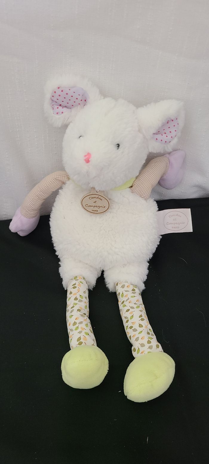 Doudou et compagnie collection Les Choupidoux souris longues jambes blanc vert - photo numéro 1