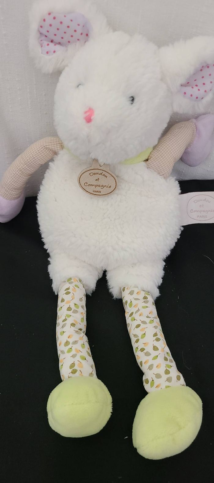 Doudou et compagnie collection Les Choupidoux souris longues jambes blanc vert - photo numéro 4