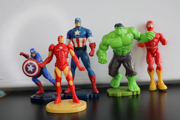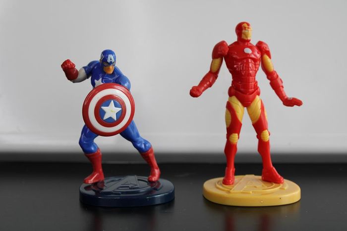 Lot composé de 5 figurines Kinder maxi 2 captain América : 13 cm de 2004 et 9 cm Hulk : 12 cm de 2004 2 Iron Man : 10 cm articulé et 13 cm sans socle En bon état, il peut y avoir quelques manques de peinture Réponds avec plaisir aux demandes d'informations complémentaires Réponse rapide envoi soigné dans les meilleurs délais