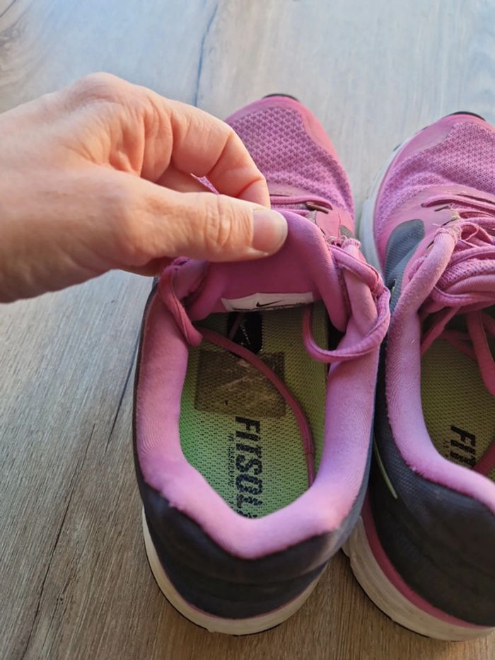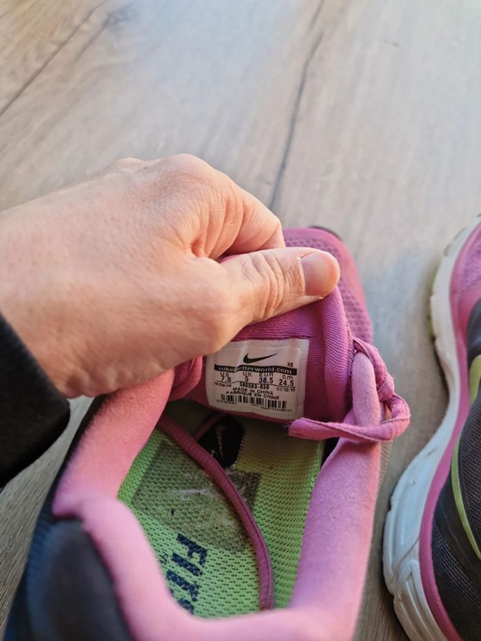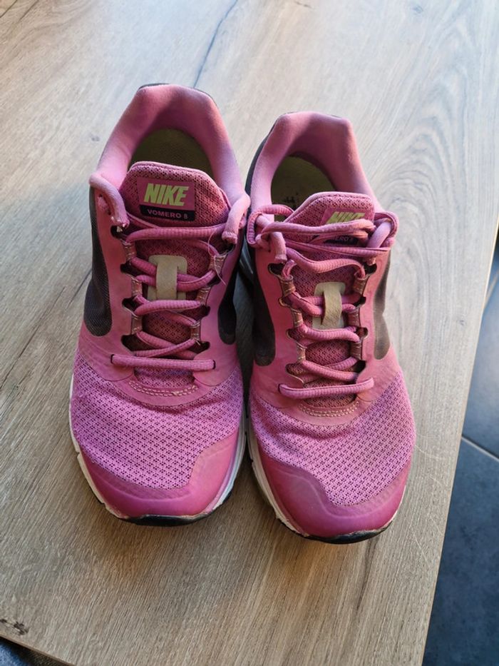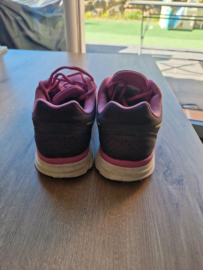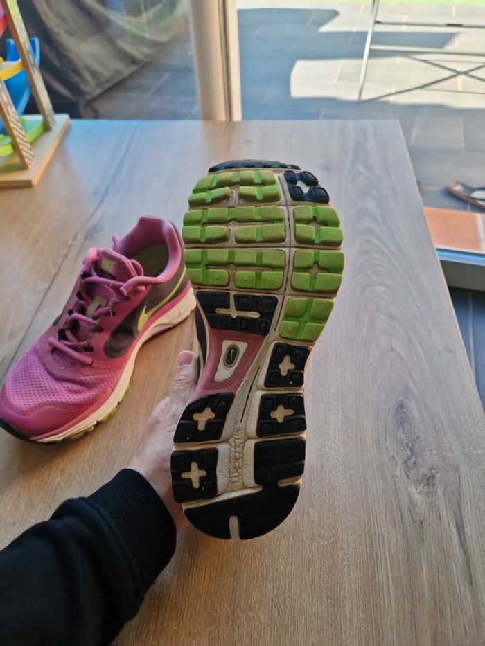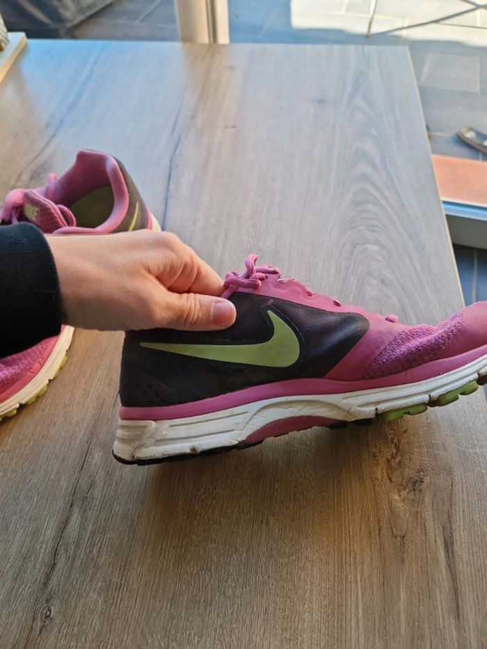 Basket de running nike rose En bon état, juste un petit bout de la semelle qui se décolle sur une chaussure mais peut facilement se recoller Pointure 38,5 N hesitez pas si d autres questions