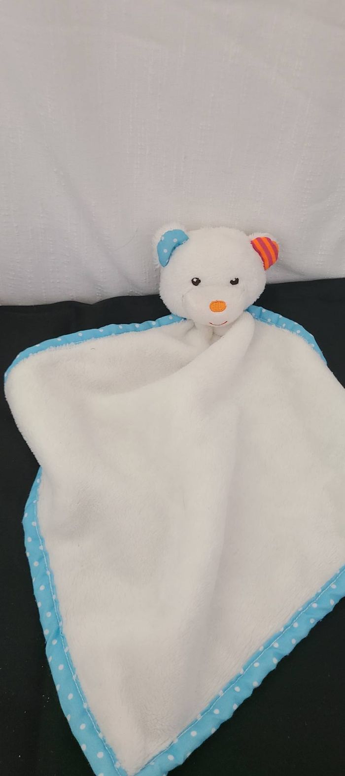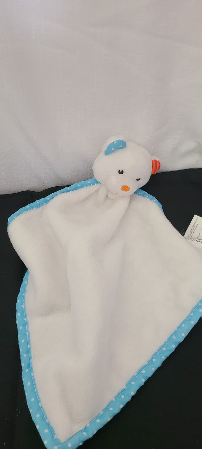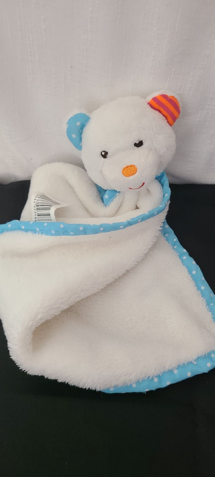 Doudou plat ours blanc bleu pois rayé rose orange Jurong ZD TRADING - photo numéro 1
