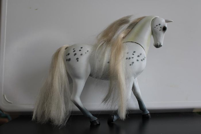 Lot composé d'un cheval gris avec crinière noire : articulé tête et membres. 13 cm de haut Horseland de Lindsay. Un cheval blanc/gris avec crinière blanche/grise : Articulé tête et cou. 18 cm de haut. lanard 2002. Le plastique est fendu sur une oreille. Réponds avec plaisir aux demandes d'informations complémentaires Réponse rapide envoi soigné dans les meilleurs délais
