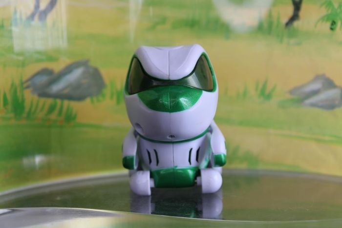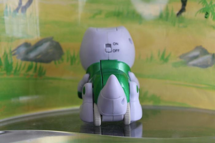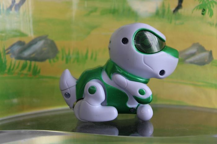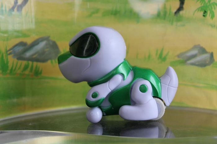 Dino robot avance et recule, change de sens en frappant dans les mains ou autre son. Les yeux s'éclairent en fonctionnement. Testé et fonctionnel, en bon état. Fonctionne avec bateries LR 44 non fournies Réponds avec plaisir aux demandes d'informations complémentaires Réponse rapide envoi soigné dans les meilleurs délais