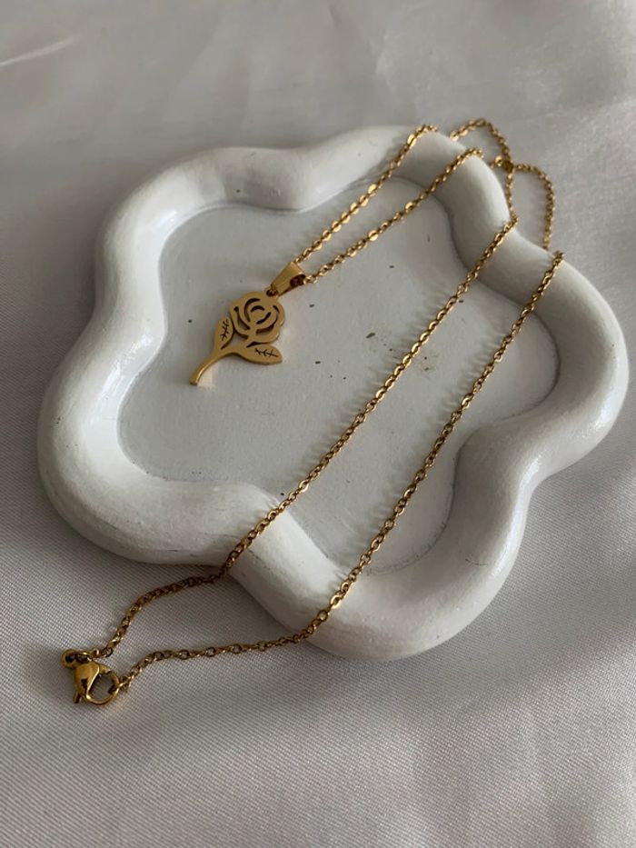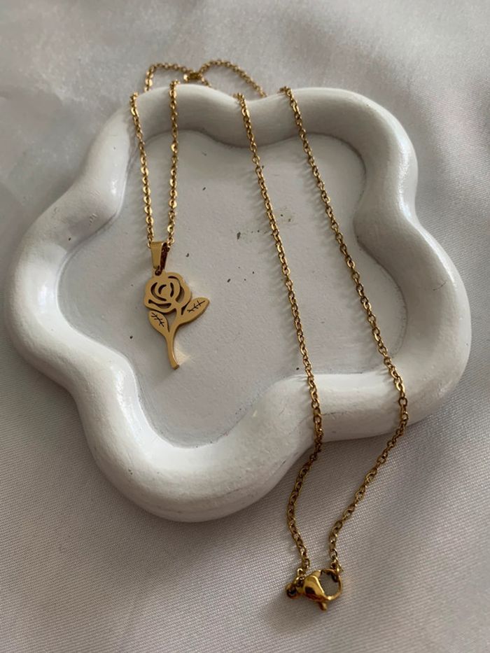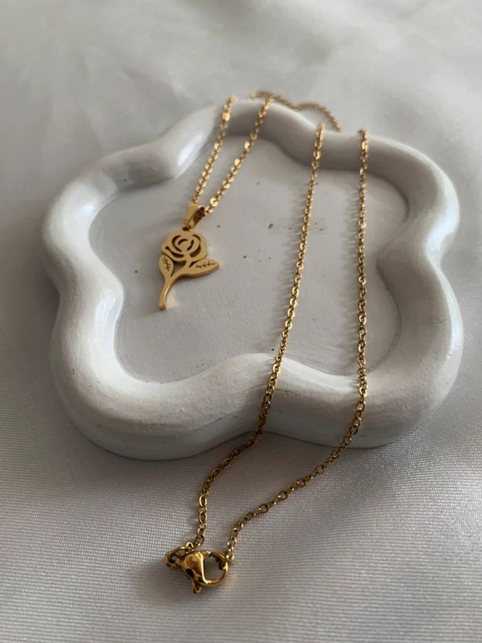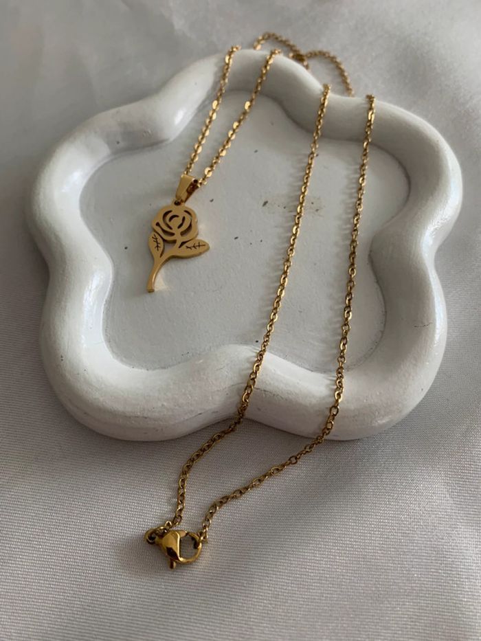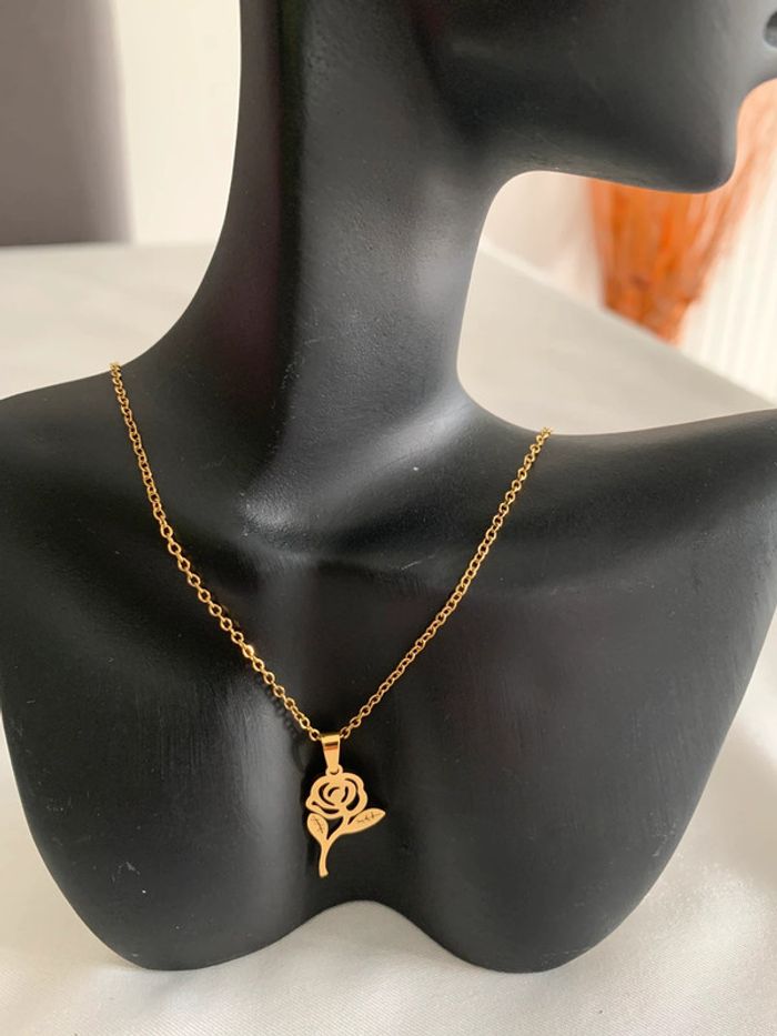 Collier pendentif fleur rose en acier inoxydable doré - photo numéro 1