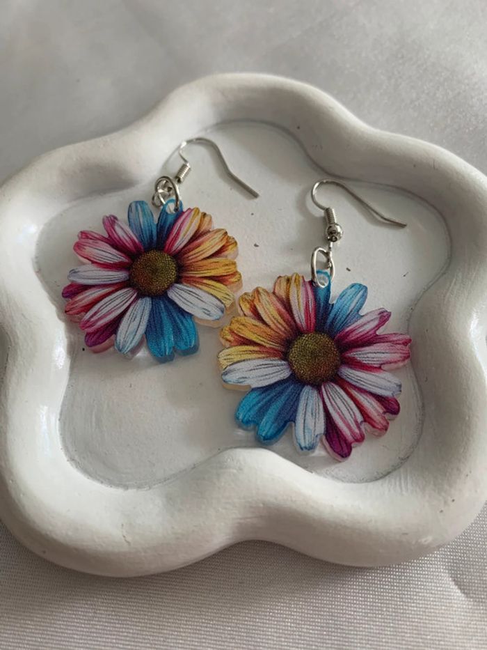Boucles d’oreilles pendantes fleur marguerite multicolore - photo numéro 1