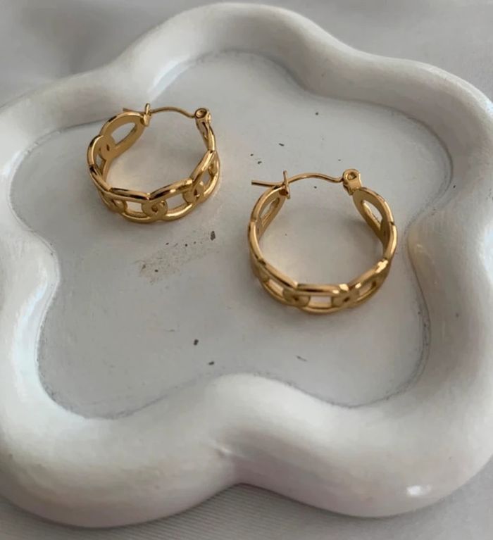 Très jolies boucles d'oreilles créoles chaîne en acier inoxydable doré! Créoles neuves jamais portées ! Taille 20 mm de diamètre ! Boucles d'oreilles tendances ! Envoi rapide et soigné avec un petit plus dans le colis! Lots d'articles avec réduction ! N'hésitez pas à vous abonner afin de ne pas manquer les nouveautés ! #boucledoreille #bijoux #bijoufemme #créoles #anneaux #acierinoxydable #boucledoreillecréole #accessoires #accessoiredemode #mode #tendance #cadeau #noel #anniversaire #créoles20mm #5€ #gift #ideagift #ideagiftwoman #regalo #idearegalo #idearegalomujer #créolesdorées #chaine #creolechaine #créolestorsadées #doré #boucledoreilledorée #pendientes #earrings #creole2cm #créolechaînedorée