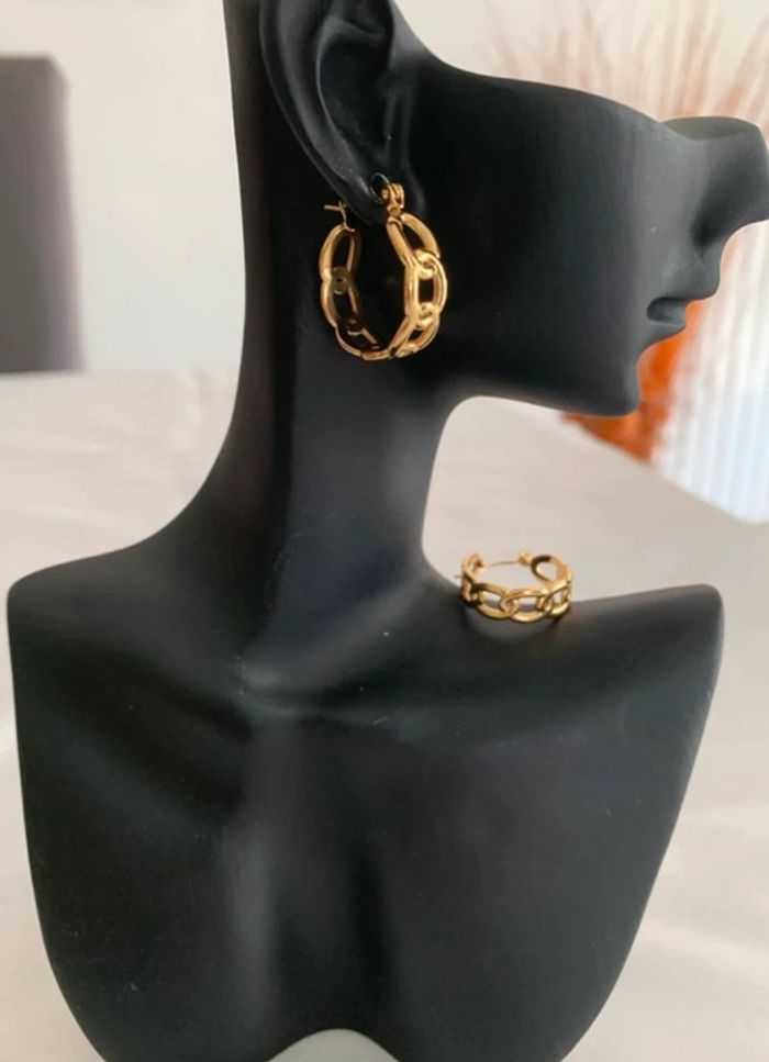 Boucles d’oreilles créoles chaîne en acier inoxydable doré 20 mm - photo numéro 4