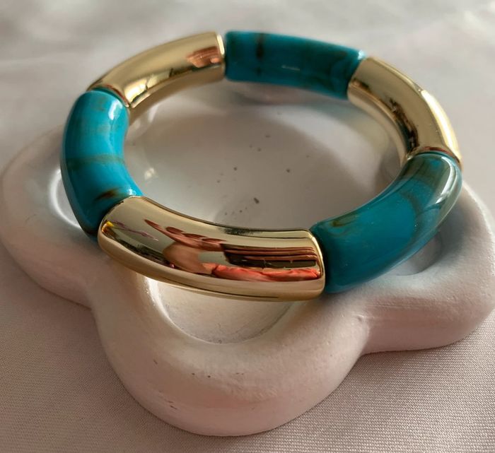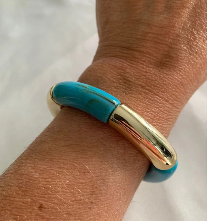 Beau bracelet en résine bleu turquoise et doré ! Bracelet élastique qui s'adapte à la plupart des poignets! Bracelet tendance ! Largeur : 1,1 cm Envoi rapide dans les 24/48 heures ! Lots d'articles possibles avec réduction ! N'hésitez pas à vous abonner afin de ne pas manquer les nouveautés ! #bijoux #bijouxfemme #bracelet #braceletfemme #bangle #doré #bleu #bleuturquoise #turquoise #braceletbangle #blaceletbleu #braceletturquoise #braceletbleururquoise #banglebleu #bangledoré #braceletdoré #bleuetdoré #élastique #5€ #gift #ideagiftwoman #ideagift #regalo #idearegalo #idearegalomujer #braceletélastique #accessoires #mode #cadeau #tendance #noël #anniversaire #bangle #pulsera
