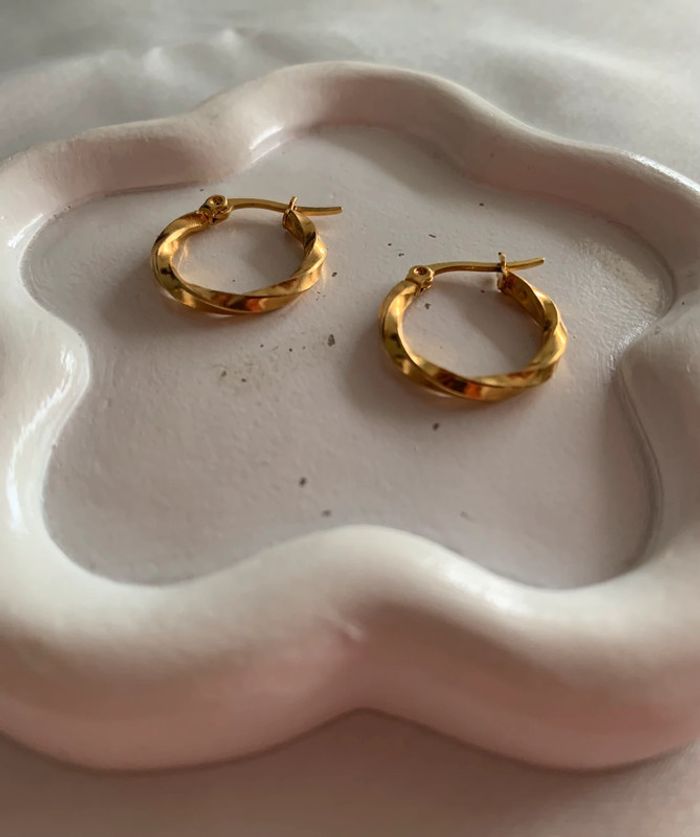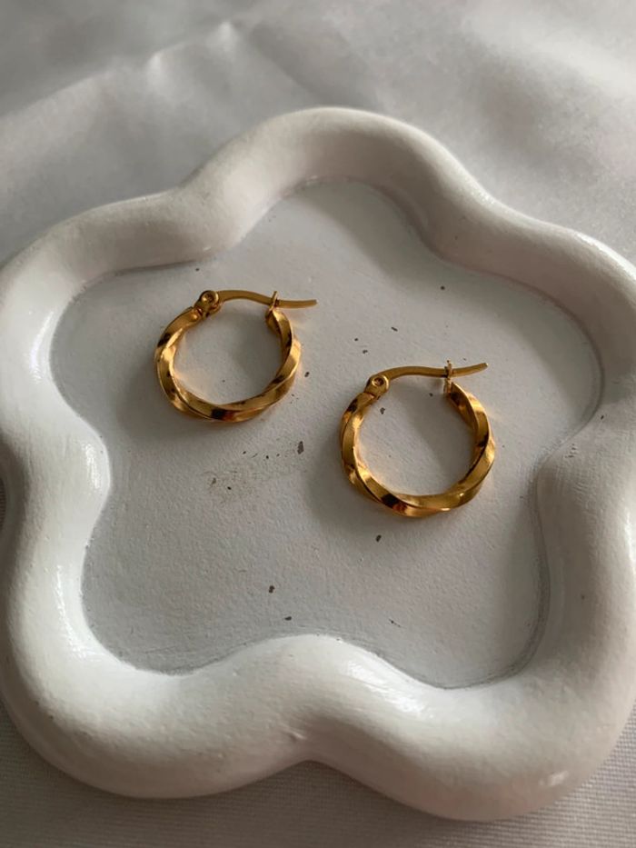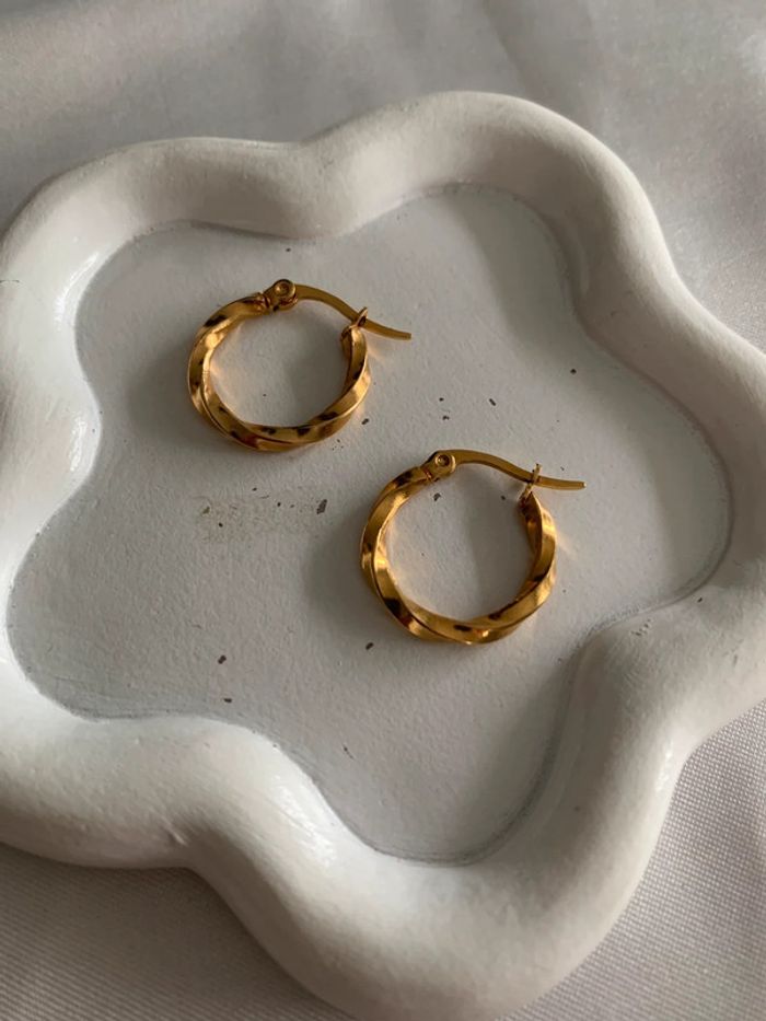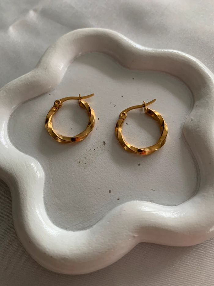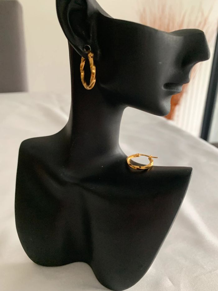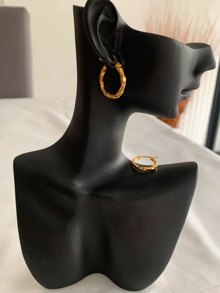 Boucles d’oreilles créoles torsadées en acier inoxydable doré 18 mm - photo numéro 6