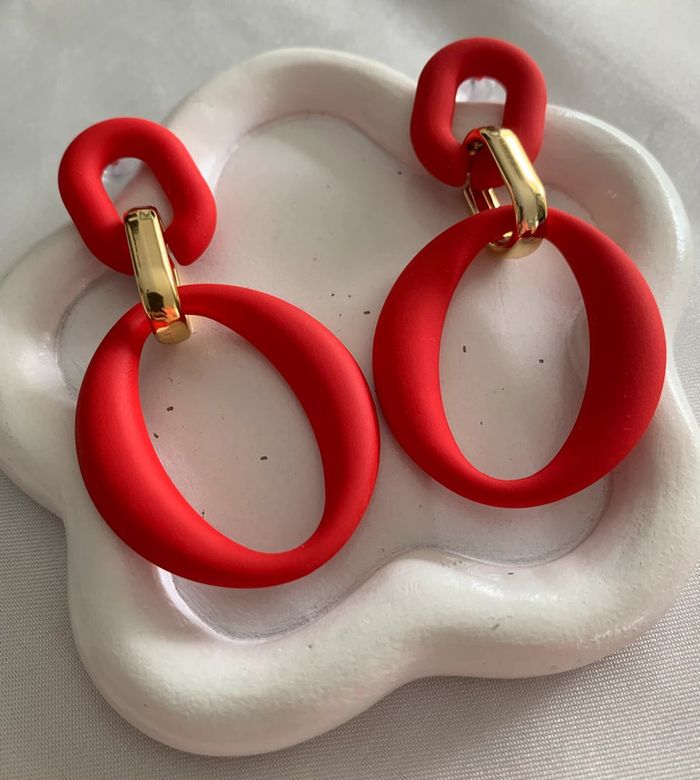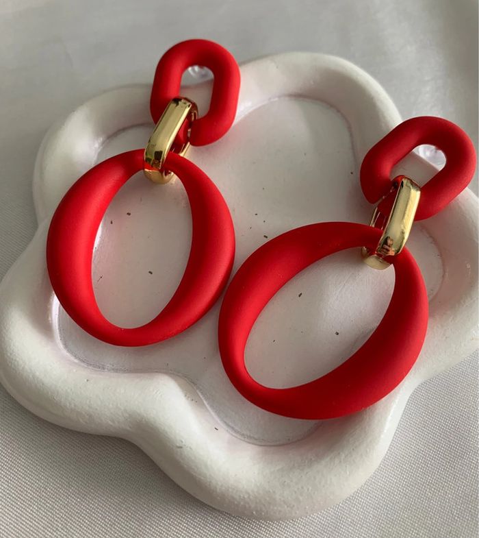 Boucles d’oreilles tendances rouges et dorées - photo numéro 1