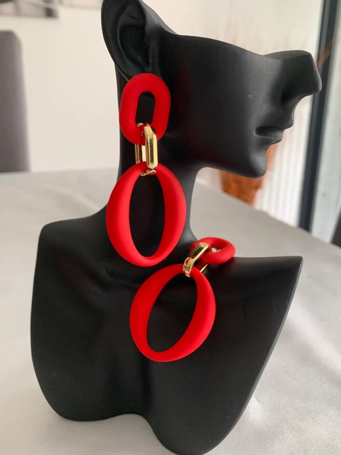 Boucles d’oreilles tendances rouges et dorées - photo numéro 5