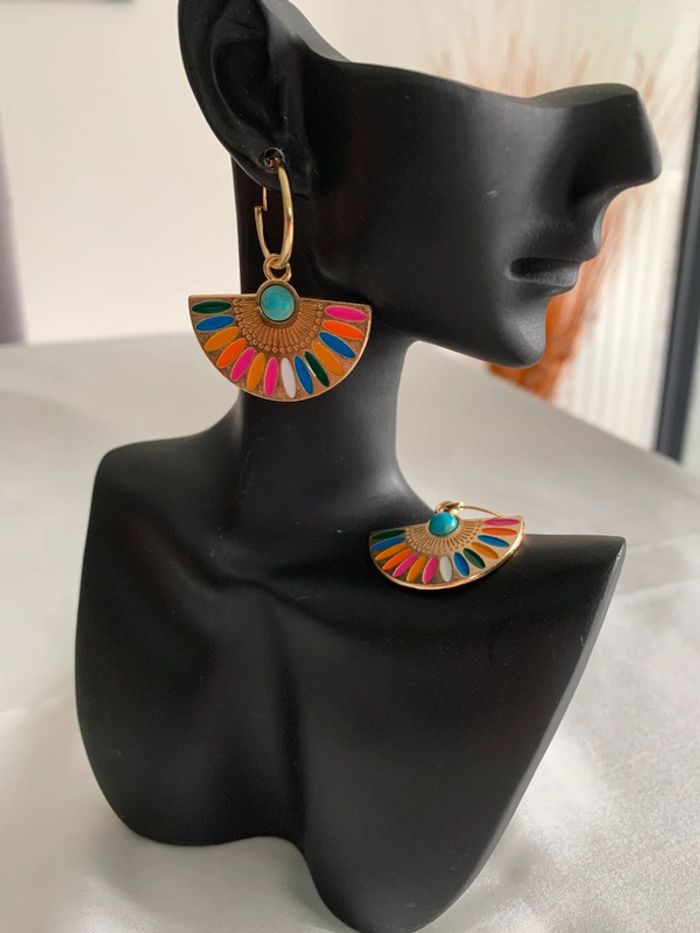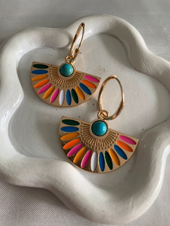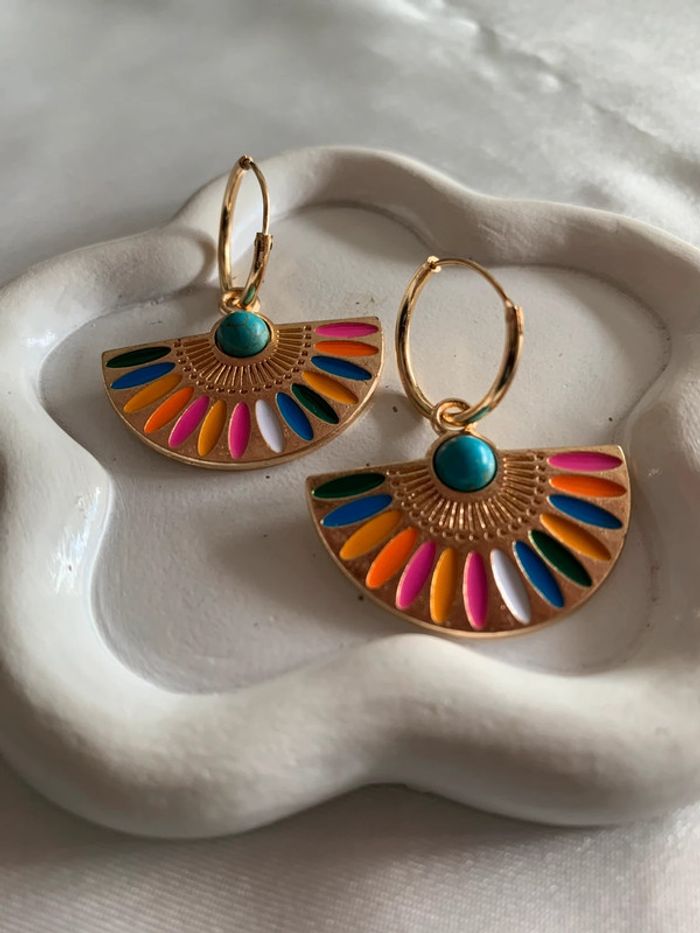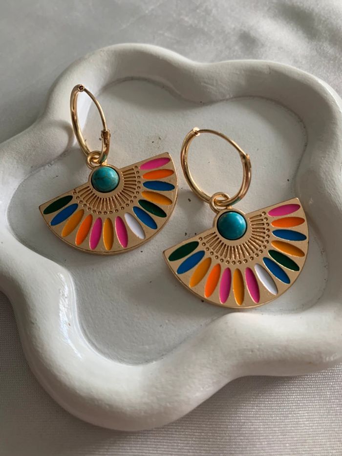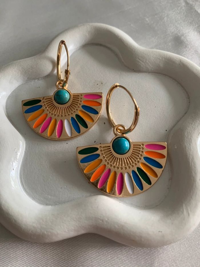 Belles boucles d'oreilles créoles éventail multicolore en alliage de zinc doré! Taille éventail : 3,5 cm / 2,1 cm Créole : 1,8 cm de diamètre ! Style : rétro / bohème ! Boucles d'oreilles neuves ! Envoi rapide dans les 24/48 heures ! Lots d'articles avec réduction ! N'hésitez pas à vous abonner afin de ne pas rater les nouveautés ! #boucledoreille #bijoux #bijoufemme #créoles #alliagedezinc #paire #accessoires #accessoiredemode #mode #tendance #cadeau #noel #anniversaire #créoles18mm #5€ #gift #idearegalo #ideagiftwoman #ideagift #regalo #idearegalomujer #boucledoreillecréoles #éventail #créoleéventail #doré #boucledoreilledorée #pendientes #earrings #creoledorée #multicolore #éventailmulticolore #boucledoreilleeventail #boucledoreilleéventailmulticolore