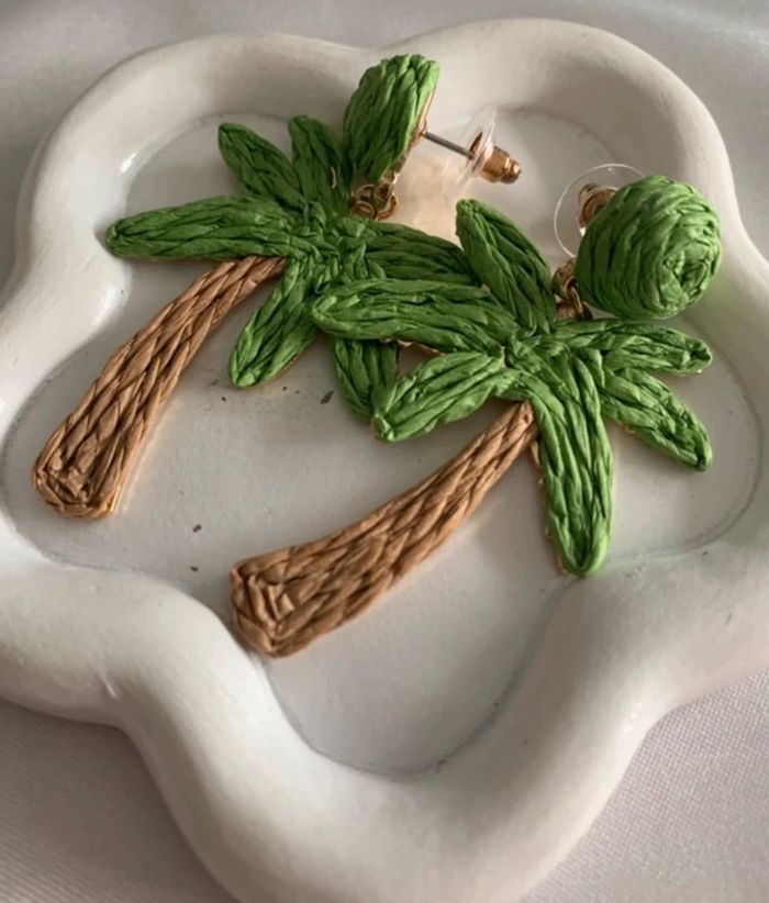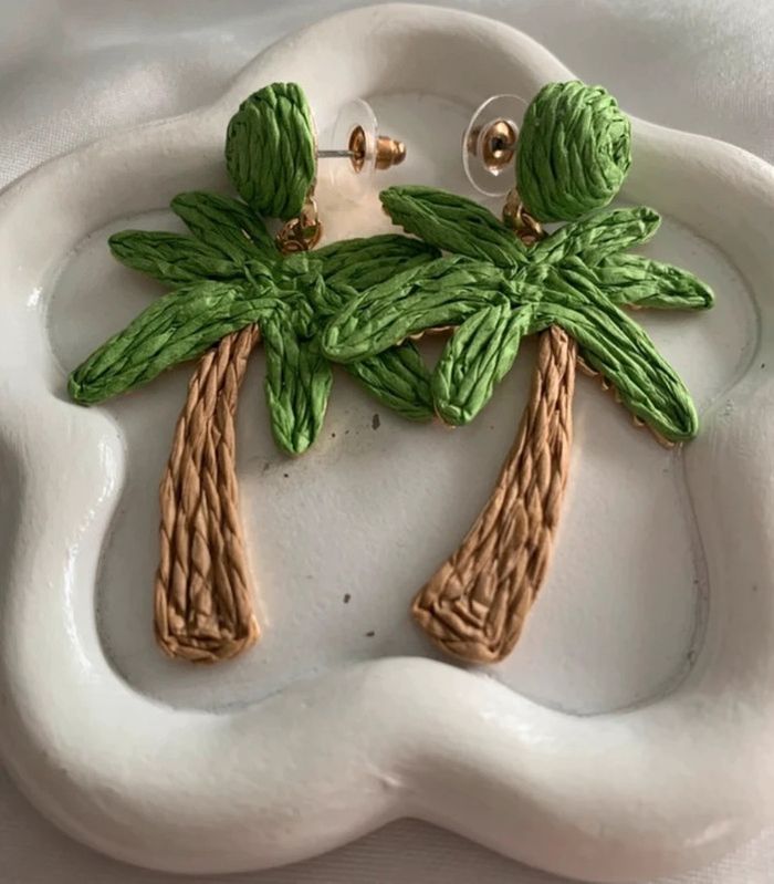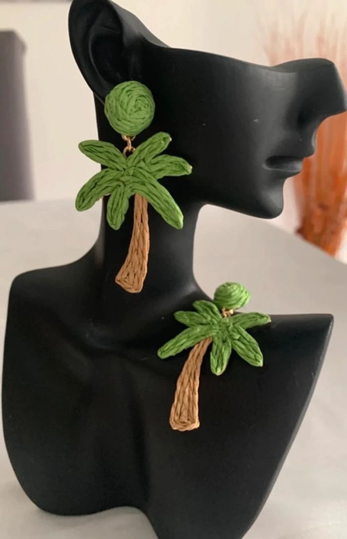 Boucles d’oreilles palmier vert et marron en raphia - photo numéro 4