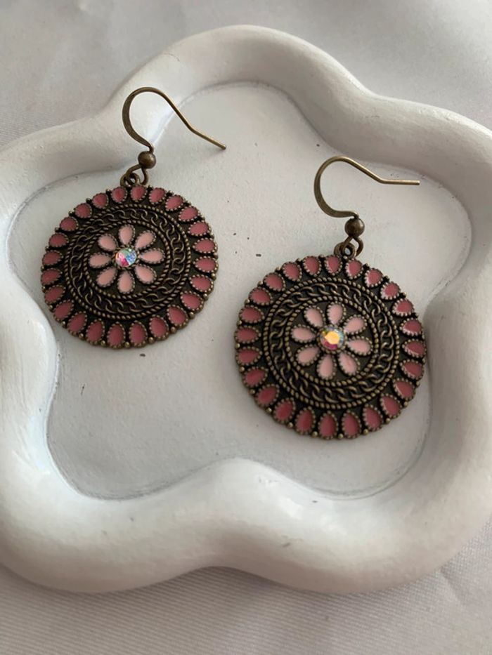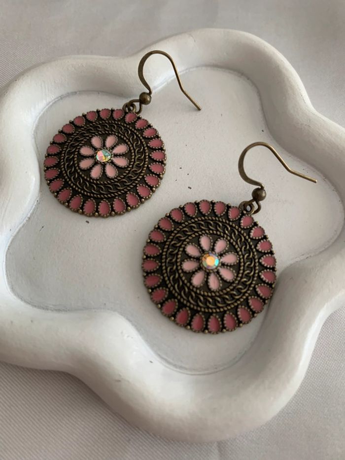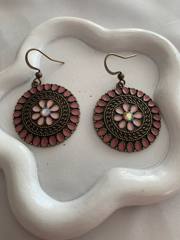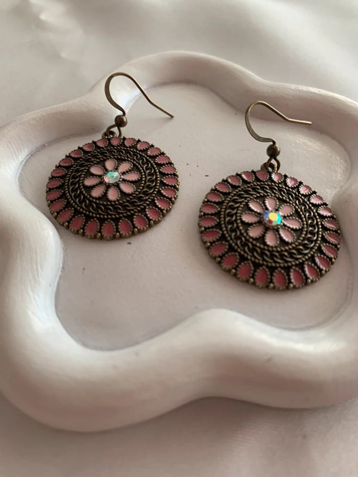 Jolies boucles d'oreilles pendantes rondes fleurs roses en alliage de zinc ! Aiguille d'oreille en fer ! Longueur 4 cm Largeur 1,8 cm Style vintage / bohème ! Envoi rapide et soigné dans les 24/48 heures ! Lots d'articles avec réduction ! N'hésitez pas à vous abonner afin de ne pas manquer les nouveautés ! #boucledoreille #bijoux #bijoufemme #rose #fleurs #alliagedezinc #boucledoreillejaune #paire #accessoires #accessoiredemode #mode #tendance #cadeau #noel #anniversaire #boucledoreillevintage #boucledoreillependante #pendientes #bohème #5€ #rondes #boucledoreillebohème #vintage #fleursroses #pink #flowers #earrings #flor #vieuxrose #gift #ideagift #ideagiftwoman #regalo #idearegalo #idearegalomujer