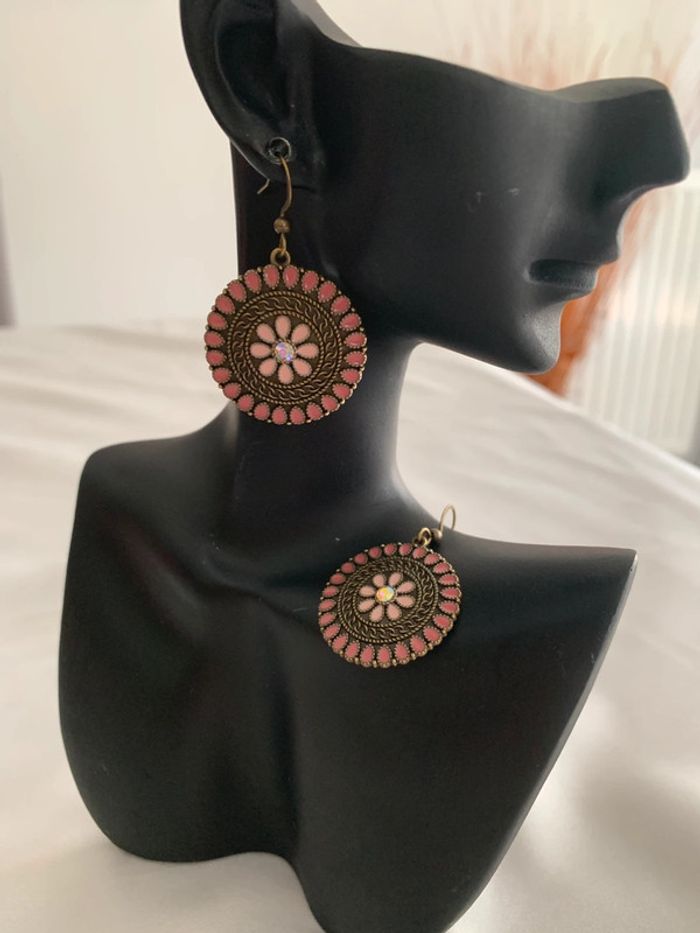 Boucles d’oreilles rondes fleur rose en alliage ancien - photo numéro 5