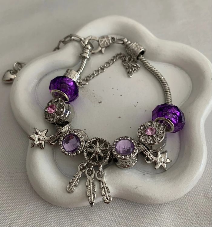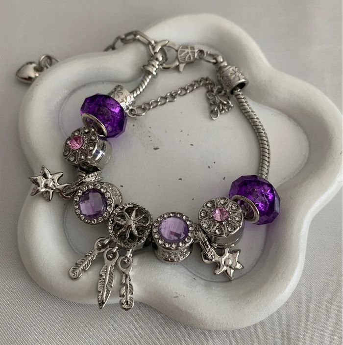 Bracelet à breloques violet en alliage argenté - photo numéro 1