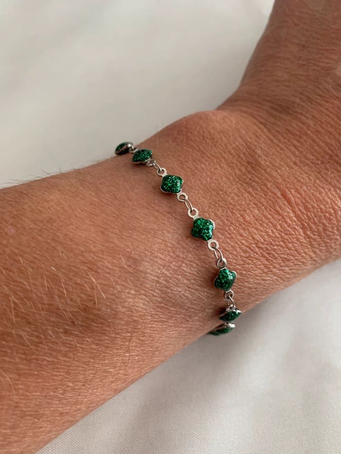 Bracelet trèfle vert à quatre feuilles en acier inoxydable argenté - photo numéro 1