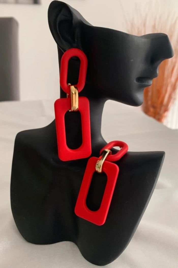 Boucles d’oreilles géométriques rouges et dorées - photo numéro 4
