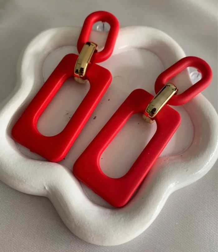 Boucles d’oreilles géométriques rouges et dorées - photo numéro 1