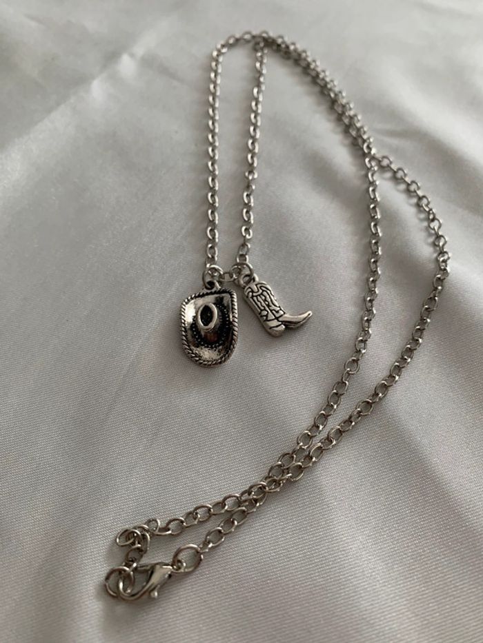 Joli collier pendentif chapeau et botte de cowboy style country argentés en alliage de zinc ! Style country / boho! Longueur du collier: 45 cm + 5 cm Collier neuf, mixte ! Collier tendance idéal pour les amoureux de country ! Envoi rapide dans les 24/48 heures ! Lots d'articles avec réduction ! N'hésitez pas à vous abonner afin de ne pas manquer les nouveautés ! #collier #collierfemme #bijoux #bijoufemme #vintage #argenté #cadeau #accessoire #mode #tendance #colliervintage #collar #country #5€ #colliercountryfemme #colliercountrymixte #countrystyle #collierchapeau #gift #collierbotte #ideagiftwoman #ideagift #regalo #idearegalo #idearegalomujer #colliercountry_#colliermixte #collierhomme #colliercountryhomme #bohème #collierbohème #botte #chapeau #bijoucountry.