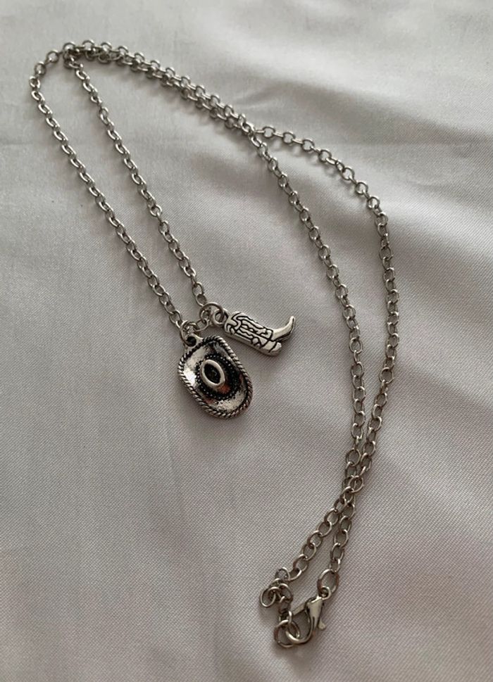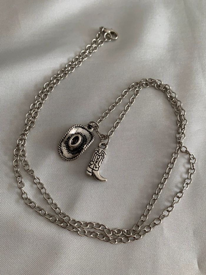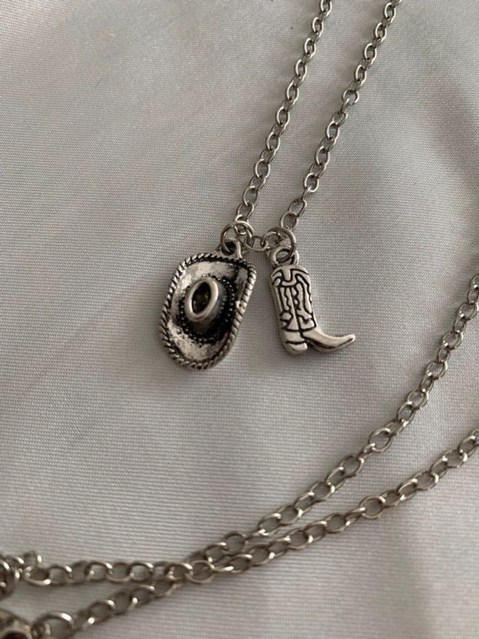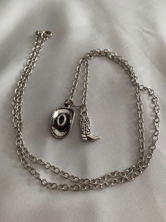 Collier mixte country chapeau et botte de cowboy argenté - photo numéro 1
