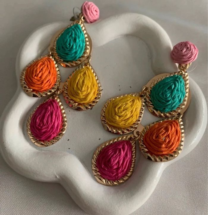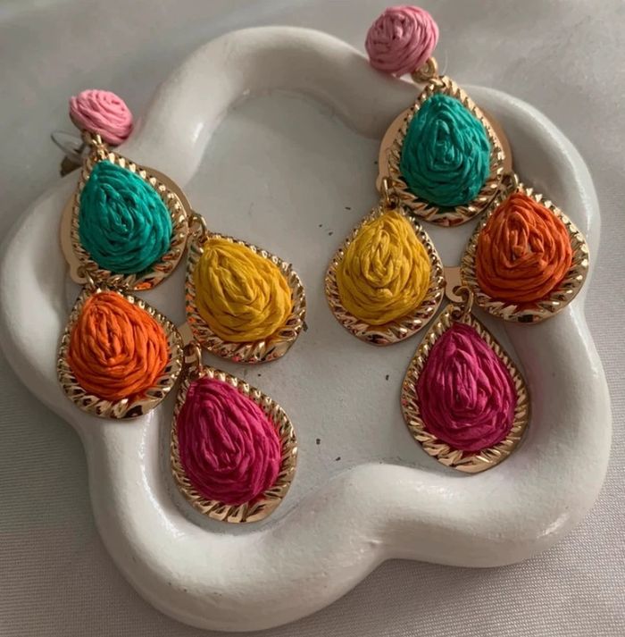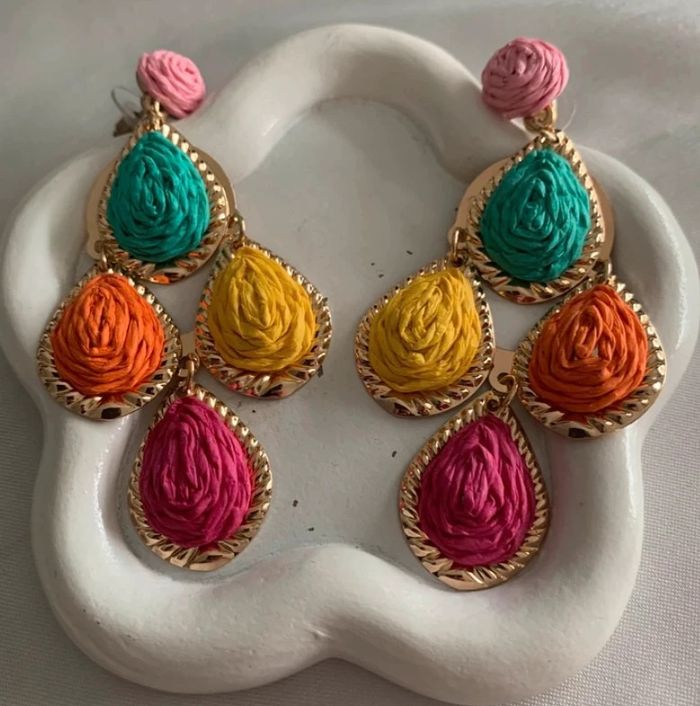 Grandes boucles d'oreilles gouttes d'eau multicolores en raphia! Aiguille d'oreille en acier inoxydable ! Longueur 8,5 cm ! Largeur 4,5 cm ! Neuves ! Envoi rapide dans les 24/48 heures ! Lots d'articles avec réduction ! N'hésitez pas à vous abonner afin de ne pas manquer les nouveautés ! #boucledoreille #bijoux #bijoufemme #raphia #accessoires #accessoiredemode #mode #tendance #cadeau #noel #anniversaire #boucledoreillegouttedeaumulticolore #boucledoreillegouttedeau #5€ #idéecadeau #gift #ideagift #regalo #earrings #idearegalo #ideagiftwoman #idearegalomujer #boucledoreillemulticolore #gouttedeau #raphiavert #jaune #orange #rose #violet #verte #vert #pendientes #earrings #greenearrings #multicolore #multicolor #pendientesmulticolor #grandeboucledoreille #boucledoreillexxl