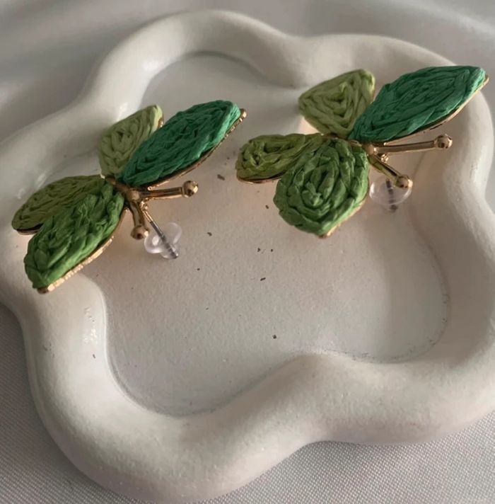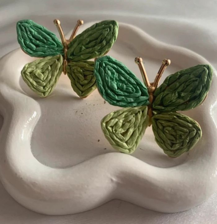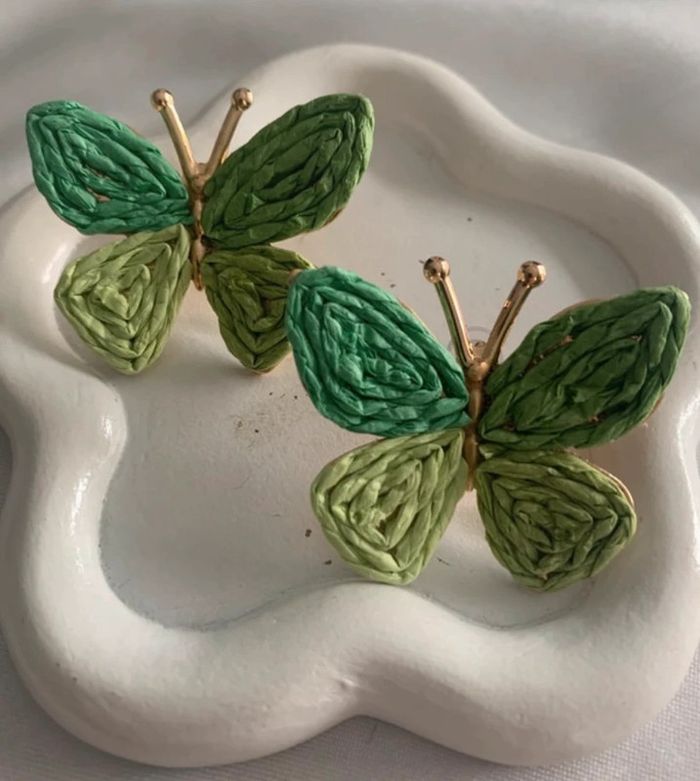 Boucles d’oreilles tendances papillon vert en raphia - photo numéro 1