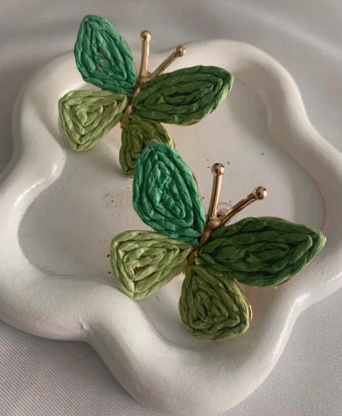 Boucles d’oreilles tendances papillon vert en raphia - photo numéro 5