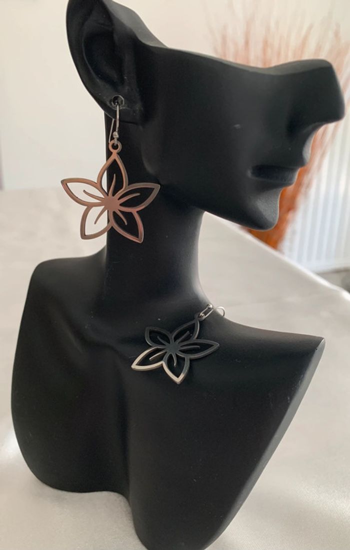 Boucles d’oreilles pendantes fleur en acier inoxydable argenté - photo numéro 2