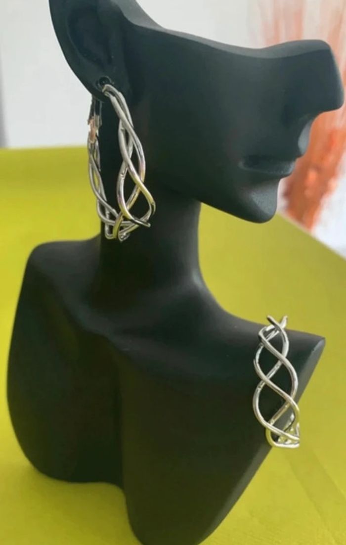 Boucles d’oreilles créoles torsadées argentées 4 cm - photo numéro 3