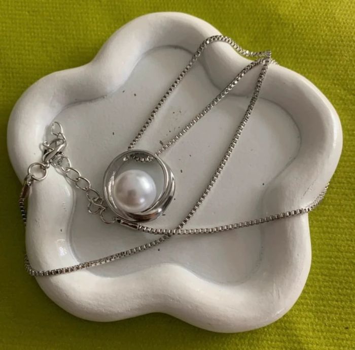 Collier vintage perle blanche en alliage argenté - photo numéro 5