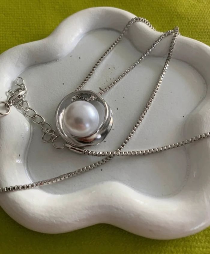 Collier vintage perle blanche en alliage argenté - photo numéro 1