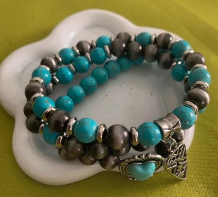 Bracelets de perles grises et bleues turquoises avec breloques en lot de 3 - photo numéro 4