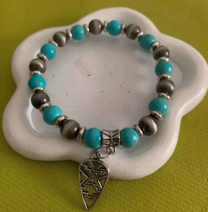 Bracelets de perles grises et bleues turquoises avec breloques en lot de 3 - photo numéro 7