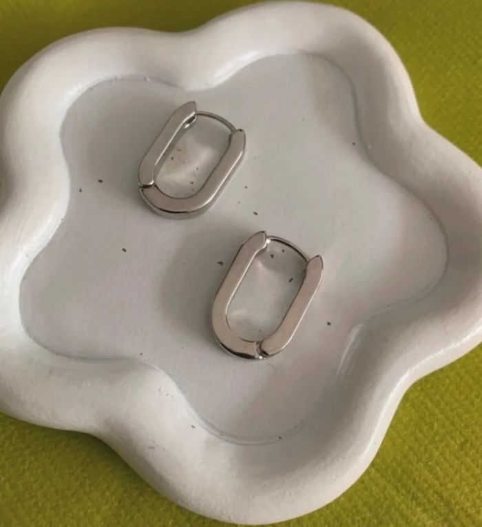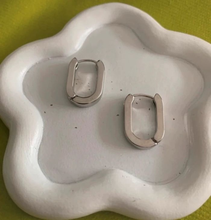 Boucles d’oreilles créoles géométriques argentées - photo numéro 4